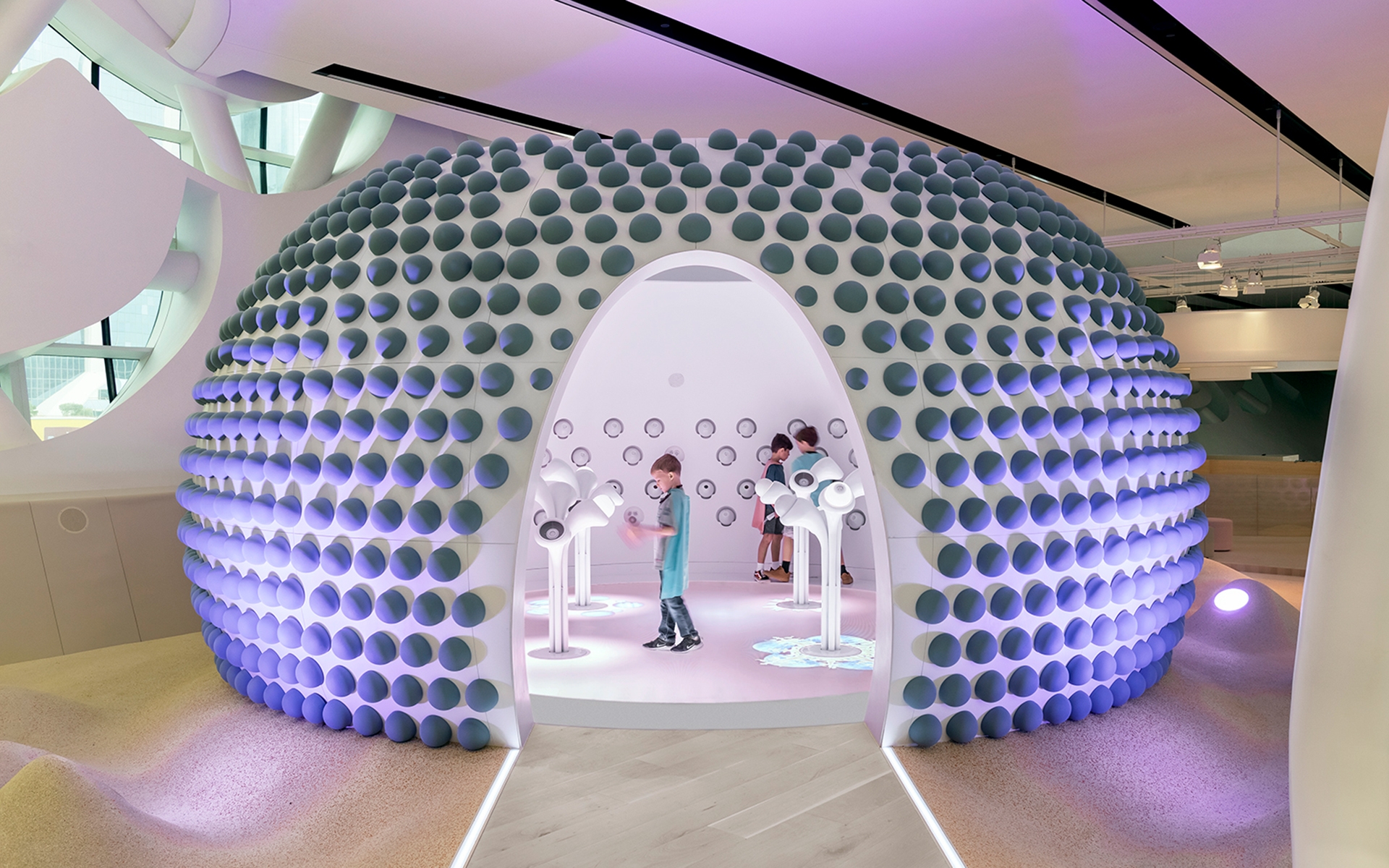 • Interactive installations and futuristic zones
